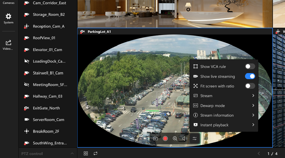 Las vistas en vivo se optimizan en una sola página. Cada celda de cámara cuenta con una barra de herramientas fija para un acceso instantáneo, lo que permite obtener información más precisa y tomar decisiones más rápidas con un diseño más limpio y enfocado.